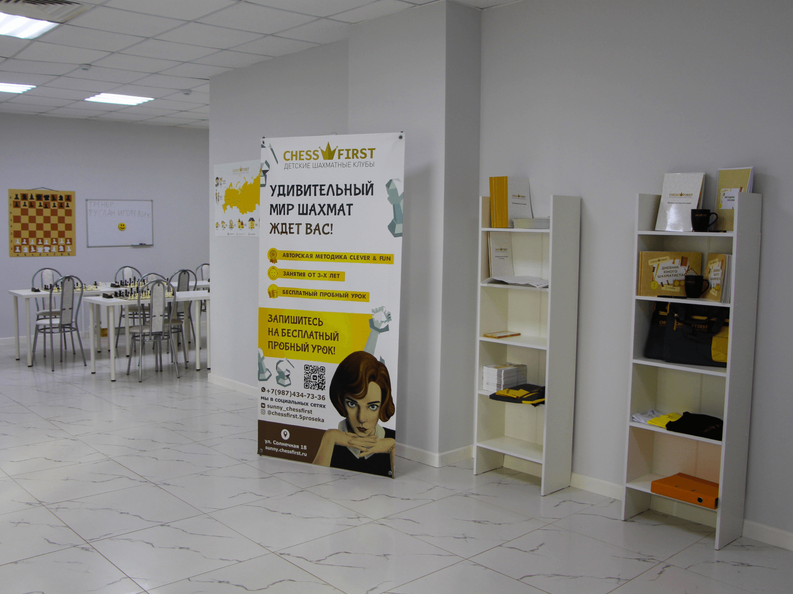 Команда Chess First обеспечит Вам яркий и судьбоносный старт! - не уверена Праздник, совмещенный с днем открытых дверей - это отличный способ для привлечения детей и их родителей, большое количество личных знакомств, а также хорошая возможность для сбора контактов! Открытие клуба всегда подразумевает тщательную подготовку. Chess First очень заботится как о своих Партнерах, так и о своих Клиентах, поэтому во Франчайзинговом Пакете предусмотрены все нюансы по организации и проведению этого важного мероприятия: план дня, развлекательная программы, праздничное оформление помещения, фото-видео съемка, подарки, сувениры, угощения для гостей и многое другое. Праздничное открытие - это торжественное мероприятие, с которого начинает формироваться репутация открывающегося Клуба!